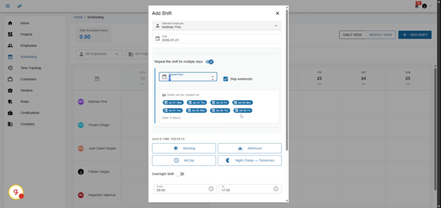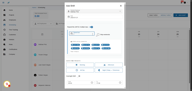 9. Repeat Shifts for Multiple Days