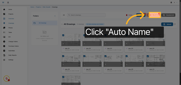 Select all drawings to apply the Auto Rename feature across your entire set for consistent naming.